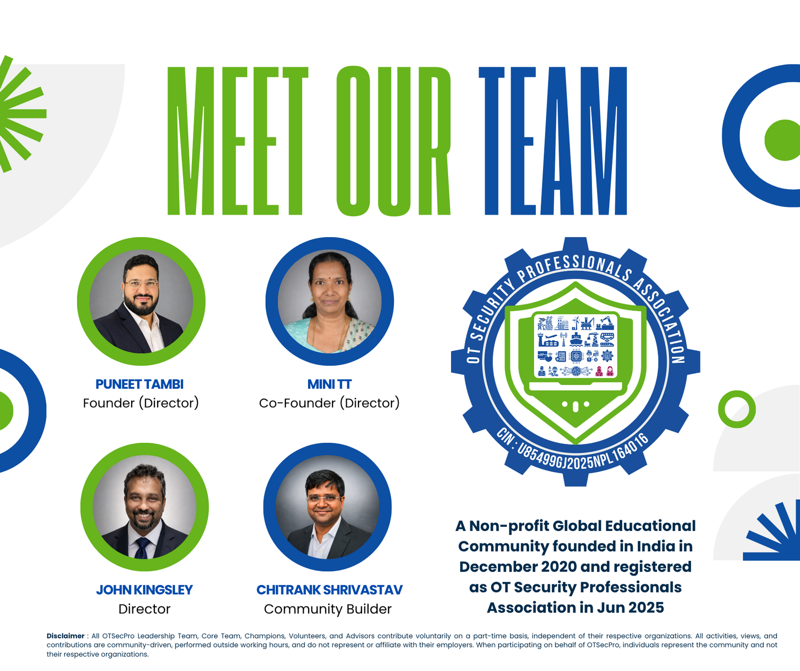 OT Security Professionals (OTSecPro) is a global, practitioner-led, non-profit community founded in December 2020 and incorporated in India as a Section 8 organization under the Companies Act, 2013. The community is dedicated to advancing Operational Technology (OT) and Industrial Cybersecurity across critical infrastructure sectors such as energy, utilities, manufacturing, oil & gas, and transportation.
